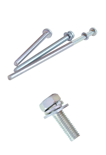 ※ “セムスねじ”とは、なべやアプセットボルト等の頭部形状のねじ(小ねじやボルト)に座金(ワッシャー)を組み込んだねじのことです。一般的に「なべセムス」、「アプセットボルトセムス」等と呼ばれ、座金の種類によっては、「3点セムス」、「P=2」、「P=3」等と表記されたりします。